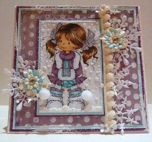 Just look at all those fun and lovely details here like the dimensional snow, pompons attached to Heidi's boots or the snow ball ribbon! Isn't that a warm and cosy project?! Beautiful work!